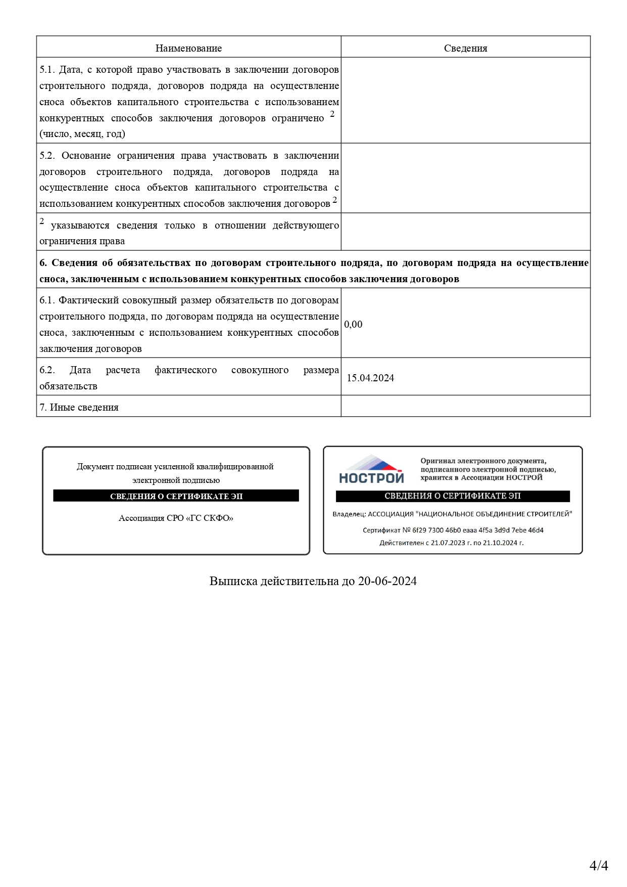 – выписки из реестра членов СРО, выданной Ассоциацией СРО «ГС СКФО»