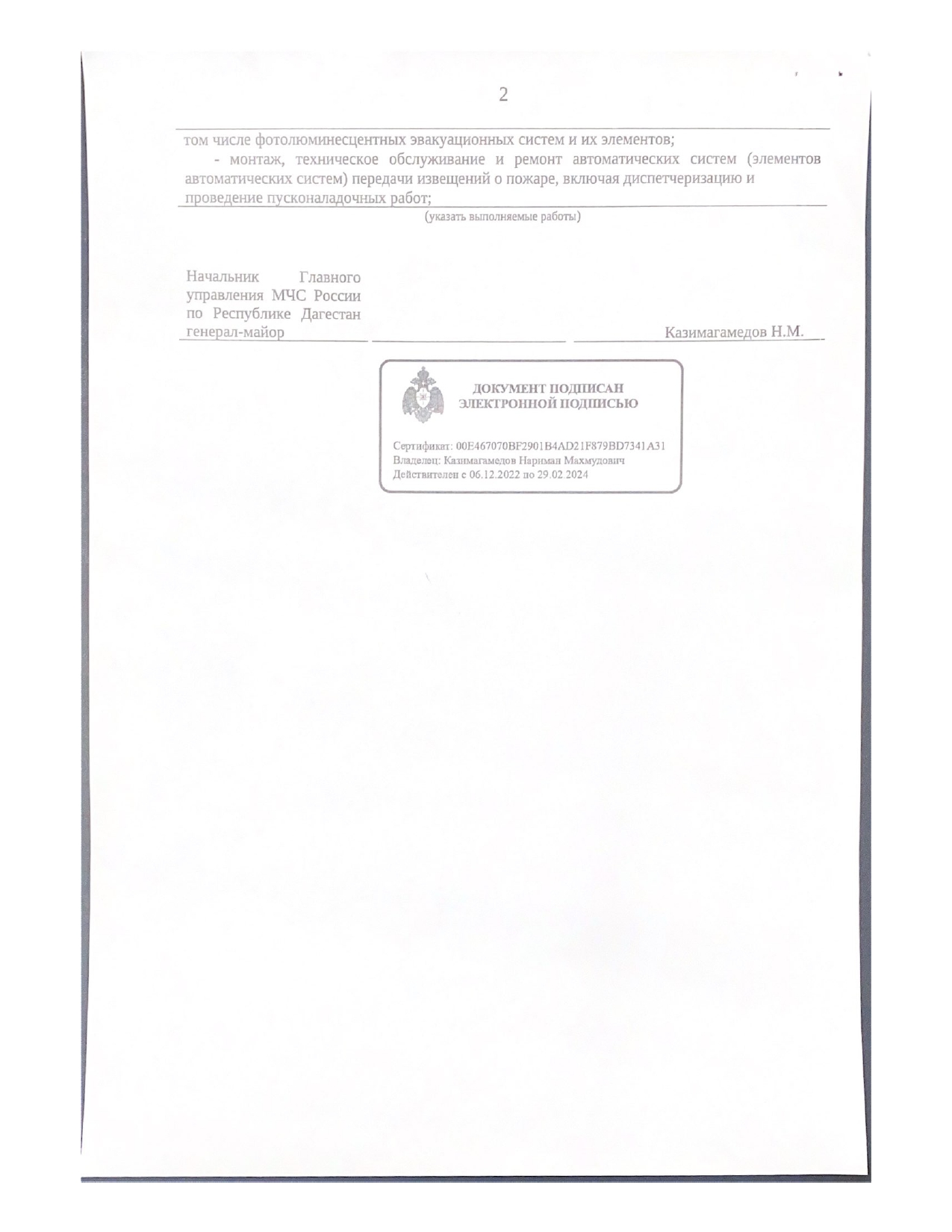 Кроме того, работы были выполнены на объектах Министерства здравоохранения, Министерства спорта, Министерства образования Республики Дагестан, Министерства обороны РФ и Департамента строительства ФСБ России, находящихся как в Дагестане (военный городок с. Ботлих), так и за пределами Республики в г. Москва и Московской области.